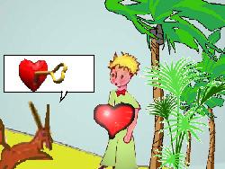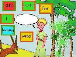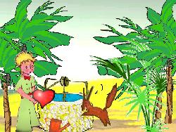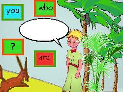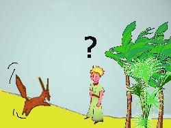 Si le joueur répond correctement du premier coup, il gagne deux crédits et le renard dit: "Water? you need a key for the well. And the water from the oasis is no drinking water. It's poisonned water. If you drink it, you die!". "I will tell you a secret : the secret is in the heart!", et il lui donne un coeur. Si le joueur se trompe une première fois, le renard répond : "Can you repeat please? Water? What do you mean exactly? Is that drinking water you're looking for?". S'il se trompe une deuxième fois, le renard dit : "I don't understand what you're looking for. Are you looking for drinking water?". A la troisième erreur, le joueur perd trois crédits. (Selon le nombre de crédits déjà perdus ou gagnés, le jeu peut se terminer). |