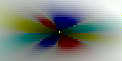 This should split up the rosette seen before into 8 sectors instead of the 4 used in the previous images, forming a more detailed image about the point of maximal AM depth showing exactly what IF changes are taking place. Additionally, the new rosette should form a crosshair of colour boundaries across time, frequency, and time/frequency. This allows the point of maximal AM to be located with considerable accuracy by following colour boundaries until all three cross. Examples of this representation can be seen in Figures 6-9 below, showing the new representation of Figure's 2-5 above (50Hz/division, 5ms/division, starting at 200Hz):