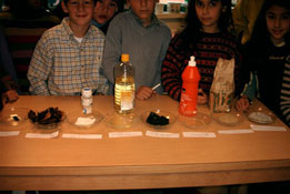 des feuilles de la terre des graviers du sel du sucre roux de l'huile du savon de l'encre |