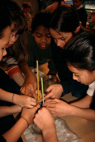 Matériel : 3 bocaux de vere, 1 bouchon de liège, 2 pailles et de la pâte à modeler.