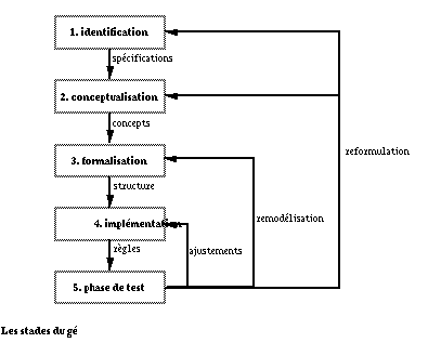 - La phase test: chaque version du système doit être testée extensivement. Cela peut conduire à des multiples ajustements et affinages du système informatique, à une remodélisation complète du système qui renvoit à l'étape 3 ou encore à une reconceptualisation des tâches qui renvoie aux étapes 1 et 2. Le savoir-faire est dynamique et ne peut être saisi que dans une simulation dynamique. Aussi, ces itérations sont inévitables.