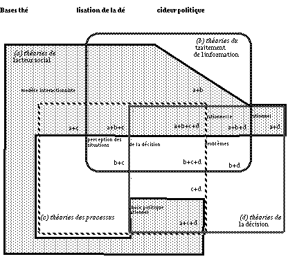 La modélisation de la démarche du décideur doit se faire dans un cadre théorique bien articulé. En ce qui concerne le décideur individuel, nous le construisons à partir (a) des théories de l'acteur social, (b) des théories (psychologiques) du traitement de l'information, (c) des théories des processus de décision politique, et (d) des théories de la décision